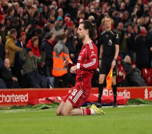 第63分鐘,利物浦球員加克波發(fā)動快速反擊,埃基蒂克腳后跟妙傳,面對維爾茨的射門,格伊做出關鍵的解圍。