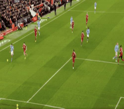 下半場開始后,場上風云突變,利物浦大舉壓上,曼城越踢越被動。