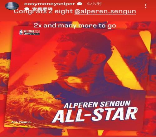 北京時間2月9日,NBA總裁亞當-蕭華宣布申京入選今年的全明星陣容,他將頂替受傷的亞歷山大,進入世界隊。繼上賽季入選后,申京本賽季再度當選,成為土耳其歷史上首位兩次入選全明星的球員。