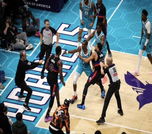 本以為沖突就此結(jié)束的,沒(méi)想到之后布里奇斯又沖了出來(lái),揮拳向杜倫打去,隨后2人又發(fā)生沖突。而在這個(gè)時(shí)候,活塞替補(bǔ)席上的斯圖爾特沖了上來(lái),他是甩開(kāi)助教,直接沖向布里奇斯,隨后2人發(fā)生沖突,連續(xù)揮拳擊打。裁判和安保好不容易才拉開(kāi),之后通過(guò)回放給出吹罰,迪亞巴特、布里奇斯、杜倫、斯圖爾特四人都被直接驅(qū)逐。而從沖突來(lái)看,他們都會(huì)遭到追加禁賽處罰,特別是斯圖爾特從替補(bǔ)席沖上來(lái)。