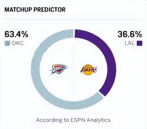 反觀湖人,同樣面臨核心球員的傷病情況,東契奇何時回歸,依舊沒有具體的時間表。湖人在上一場比賽擊敗勇士,拿下三連勝,目前以32勝19負排在西部第五。湖人憑借近期的回暖穩(wěn)住了西部前六的位置,也縮小了與前面球隊的差距。上一場比賽,詹姆斯砍下20分7籃板10助攻的準三雙數(shù)據(jù)帶隊取勝,盡管出現(xiàn)7次失誤,但整體表現(xiàn)瑕不掩瑜。此前替補席乏力的湖人,在肯納德的加盟后,替補火力也得以提升,此役湖人有三名替補球員得分上雙,成為湖人贏球的一大亮點。本場比賽,東契奇、亞歷山大繼續(xù)缺陣,杰倫威廉姆斯復(fù)出。賽前,美媒ESPN預(yù)測本場比賽,雷霆勝率63.4%,湖人勝率36.6%。
