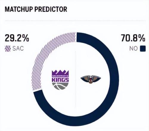 賽前,美媒ESPN對(duì)本場比賽進(jìn)行了預(yù)測,鵜鶘勝率高達(dá)70.8% ,國王勝率僅有29.2% ,差距非常明顯。