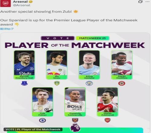 祖比門迪入選了上周英超最佳球員候選。