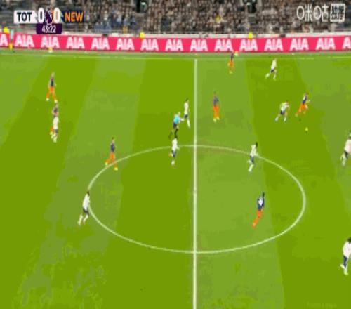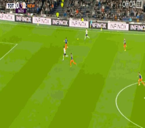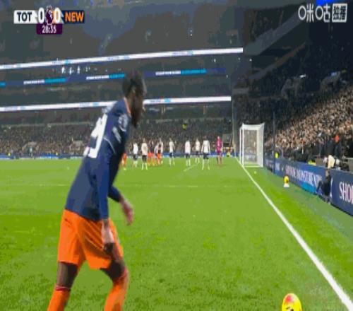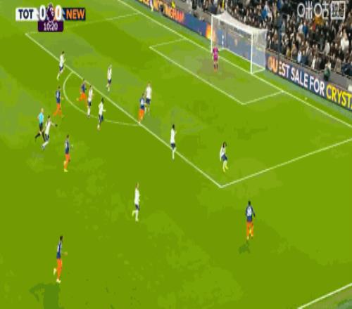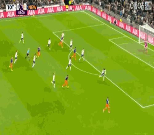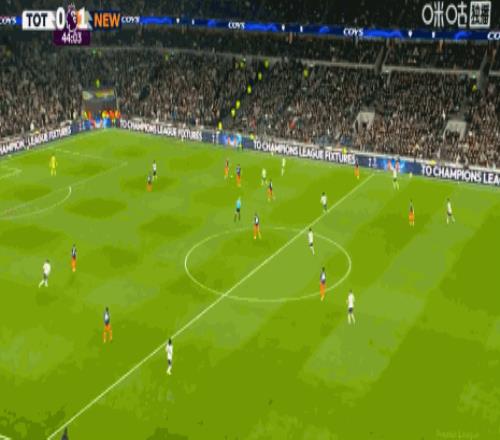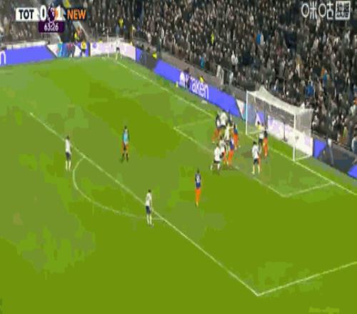 第45+5分鐘,打破僵局,佳夫門(mén)前補(bǔ)射得分,紐卡1-0
