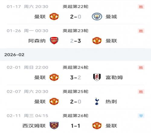 體育播報2月11日宣 本輪英超,曼聯(lián)客場對陣西漢姆沒能取得勝利,卡里克此次上任后帶領球隊取得的連勝成績也暫時止步于4場!