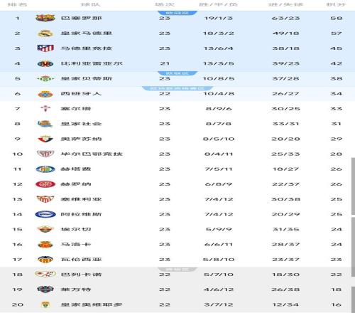 隨著皇馬20緊追巴薩,馬競01翻車,西甲積分榜出爐:前二差1分