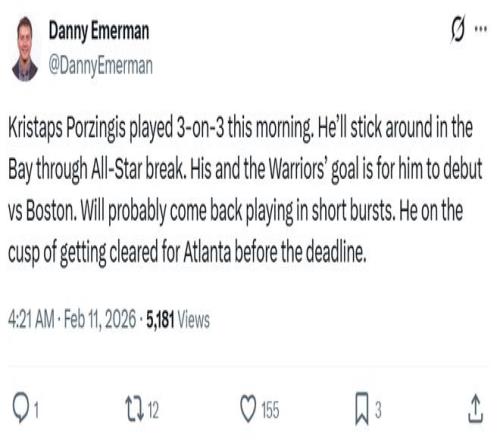根據(jù)勇士隊記Danny Emerman報道,球隊新援波神今早參加了3對3訓(xùn)練,接下來他將繼續(xù)留在灣區(qū),直到全明星周末結(jié)束。