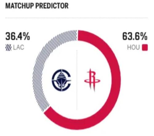 賽前,美媒ESPN對(duì)本場(chǎng)比賽進(jìn)行了勝率預(yù)測(cè),火箭隊(duì)勝率高達(dá)63.8%,快船勝率則僅有36.2% ,差距還挺明顯。