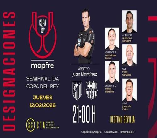 西班牙足協(xié)官方確認(rèn),胡安-馬丁內(nèi)斯將擔(dān)任主裁,VAR是巴勃羅-岡薩雷斯。