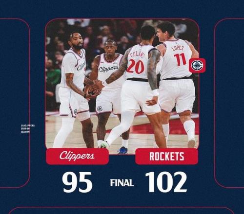 北京時間2月11日,NBA常規(guī)賽,洛杉磯快船客場95-102輸給休斯頓火箭,快船的戰(zhàn)績也來到25勝28負(fù)。