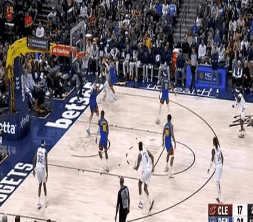 哈登試圖找約基奇擋拆,約基奇目送,小哈達(dá)維切掉哈登給加雷特·阿倫的傳球,逼得哈登自己撤步,射中全場(chǎng)第一個(gè)三分。