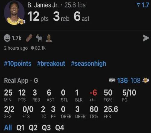 值得一提的是,“太子爺”今年以來,三分球合計8中6,命中率達到75%湖人隊內(nèi)最高。