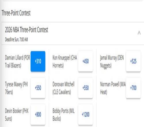 1.利拉德(+310)、2.克努佩爾(+450)、3.穆雷(+525)、4.馬克西和米切爾(+550)、6.鮑威爾(+700)、7.布克(+800)、8.波蒂斯(+1200)