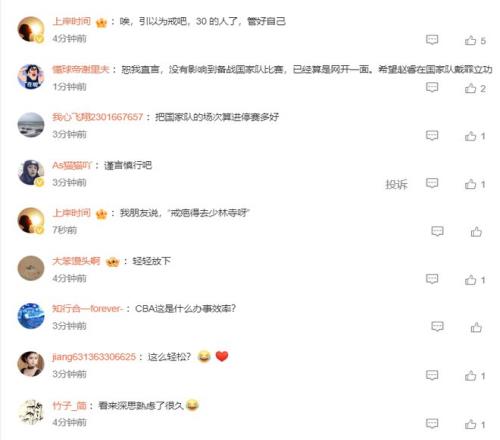 不少的球迷都在評(píng)論區(qū)表示這個(gè)處罰太輕了,輕拿輕放,多國(guó)家隊(duì)的比賽絲毫沒(méi)有影響,實(shí)際上該處罰他不能出戰(zhàn)中國(guó)男籃的比賽才對(duì)。