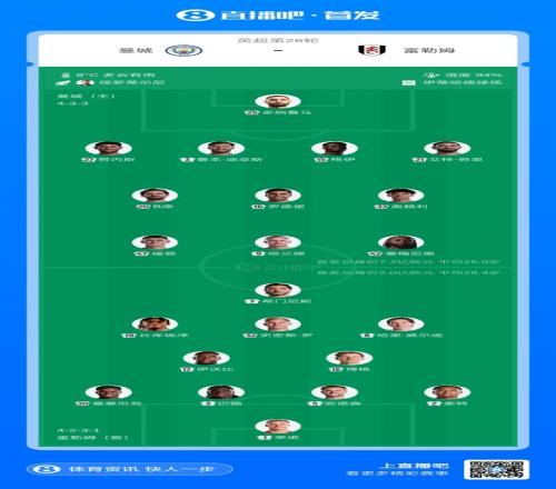 曼城首發(fā):25-多納魯馬、27-努內(nèi)斯、3-迪亞斯、15-格伊、21-艾特-努里、16-羅德里、20-B·席爾瓦、33-奧賴?yán)?2-塞梅尼奧、47-福登、9-哈蘭德