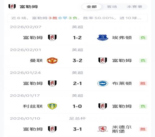 富勒姆首發(fā):1-萊諾、5-安諾森、3-巴錫、2-泰特、30-塞塞尼翁、16-博格、17-伊沃比、32-史密斯·羅、8-哈里·威爾遜、19-丘庫埃澤、7-希門尼斯