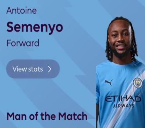 傳射建功,塞門約當(dāng)選曼城vs富勒姆全場最佳球員