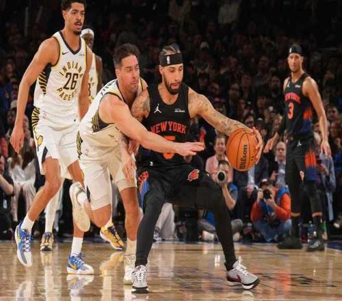 尼克斯上一場客場111-89大勝凱爾特人,步行者過去4場連輸火箭、爵士、雄鹿與猛龍?jiān)庥?連敗,本賽季首次交鋒尼克斯客場114-113險(xiǎn)勝步行者。本場尼克斯缺少阿奴諾比、麥克布萊德與羅賓遜,步行者缺少祖巴茨、哈利伯頓、托平等。首節(jié)開局尼克斯9-3領(lǐng)先,并在之后維持12-5領(lǐng)先,步行者一波8-0攻勢反超,尼克斯纏斗至14-16落后。尼克斯內(nèi)外開花一波8-0攻勢反超,西亞卡姆與內(nèi)姆哈德連續(xù)得分,尼克斯26-27被反超。雙方繼續(xù)交替領(lǐng)先纏斗,首節(jié)結(jié)束尼克斯33-32領(lǐng)先步行者。首節(jié)步行者三分17中7,西亞卡姆7中4得到10分;尼克斯三分9中3,布倫森8中4得到11分。