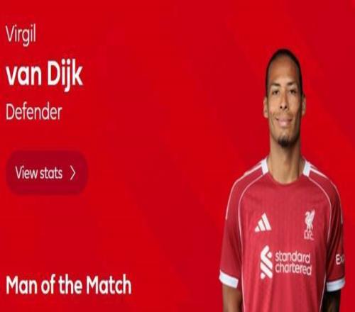 關鍵時刻還是要看隊長,破門的范戴克比賽后被評為了本場最佳。
