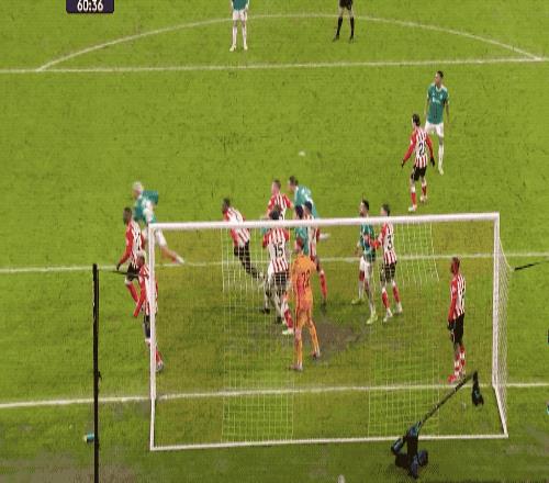 第33分鐘,接到加克波的傳球,維爾茨在狹小的空間內(nèi)依舊選擇射門,皮球擊中立柱。