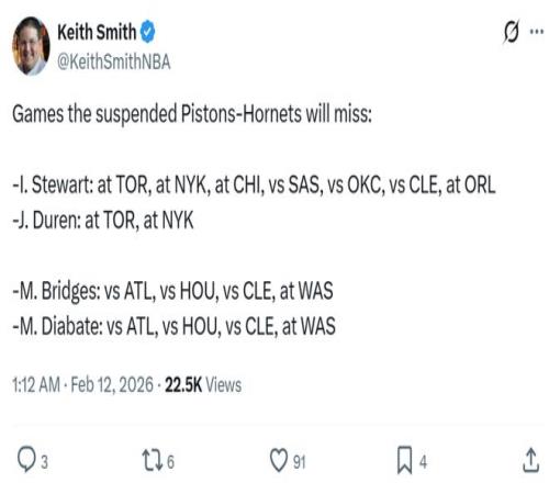 針對黃蜂與活塞的超大規(guī)模沖突,NBA官方火速理清事件脈絡,公布對于4名參與沖突球員的具體處罰,合計禁賽17場比賽。
