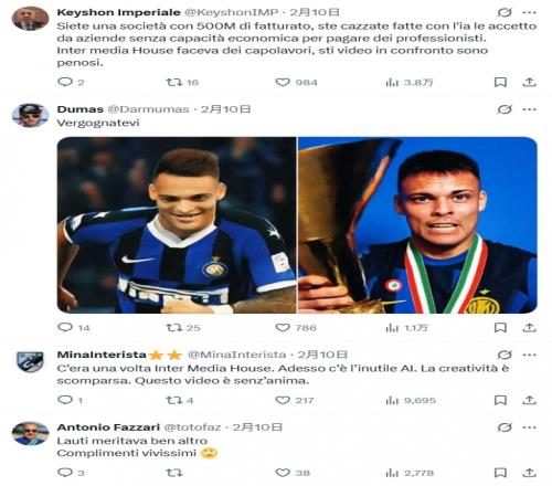 這段視頻目前已有超400萬觀看量,以及800多條評論,大多數(shù)都是差評。許多國米球迷批評俱樂部使用AI的方式有些“偷懶”: