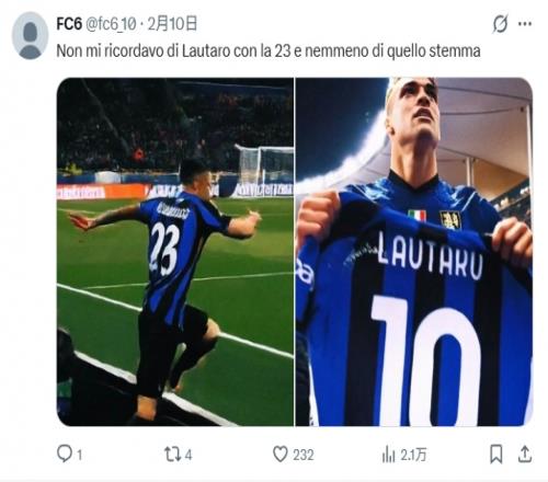 “我不記得勞塔羅穿過23號,這個(gè)隊(duì)徽我也沒見過?!?/p>