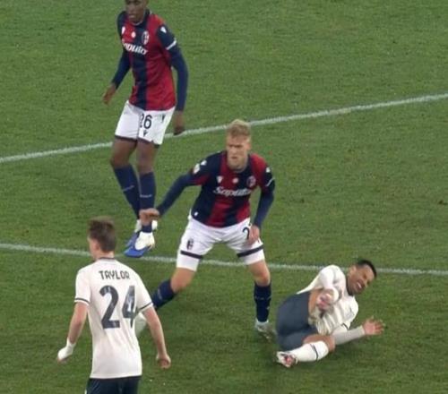 本場比賽第45分鐘,佩德羅在與博洛尼亞中場延斯-厄德高拼搶之后痛苦倒地,最終在隊(duì)醫(yī)的攙扶下退場,強(qiáng)烈的疼痛感甚至讓這位久經(jīng)沙場的老將當(dāng)場落淚。