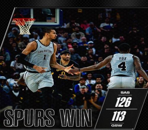 文班亞馬助攻福克斯跳投得分,格林回敬遠投。格林搶斷??怂?,隨后助攻波杰姆斯基籃下得手。分差僅為7分,勇士看到贏球希望。凱爾登約翰遜強攻禁區(qū)得手,格林失誤,文班亞馬2罰全中。格林再次失誤,??怂贡┛?。桑德斯遠投不進,比賽時間走完。最終,馬刺以126比113力擒勇士,得以上演16分逆轉(zhuǎn)好戲。圣安東尼奧豪取6連勝,鞏固了西部第2的排位。勇士末節(jié)以19比32落后,慘遭翻盤。