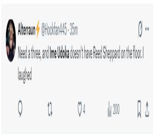 火蜜:我們需要一個(gè)三分,而烏度卡卻不給謝潑德登場(chǎng),太可笑了。