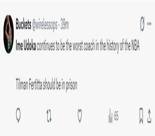 雄鹿球迷:烏度卡依舊是聯(lián)盟歷史最差的交投,費(fèi)爾蒂塔更是一個(gè)戰(zhàn)犯。