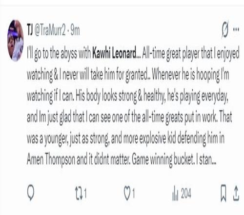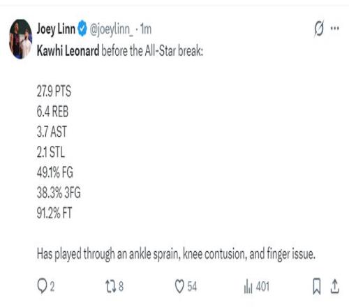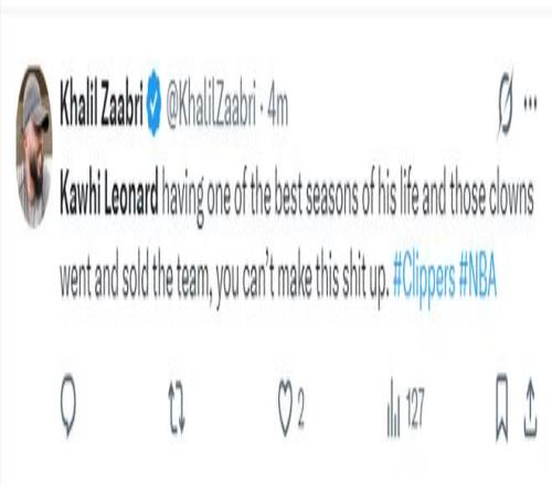 NBA記者Khalil Zaabri賽后寫道:卡哇伊打出了職業(yè)生涯最高光的一個賽季,但快船管理層那些蠢材卻送走了多位核心球員,這簡直太荒唐了。