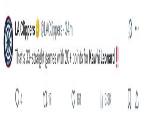 此役后小卡還連續(xù)33場比賽拿到20+快船隊史獨享歷史第三。