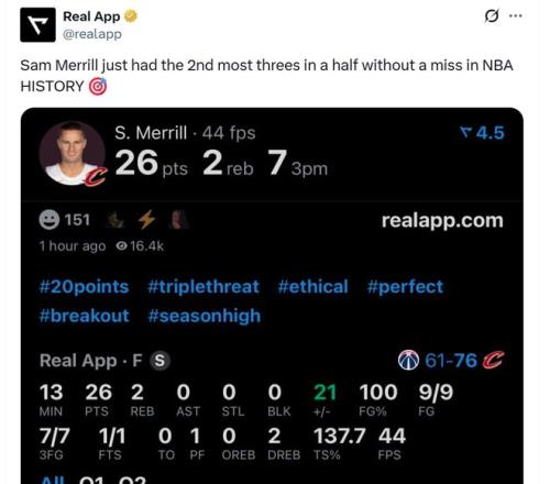 憑借這樣的表現(xiàn),梅里爾成為騎士隊史首位以至少90%命中率,砍下30+同時沒有出現(xiàn)任何失誤的球員。