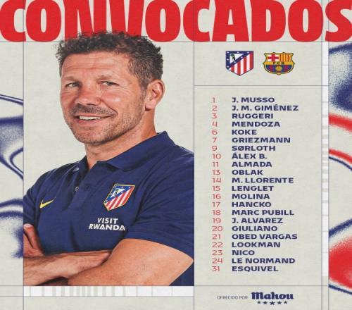 馬競國王杯對巴薩大名單:盧克曼、阿爾瓦雷斯、格列茲曼在列