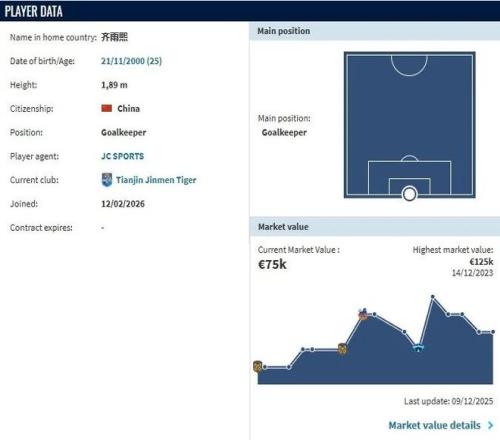 德國(guó)轉(zhuǎn)會(huì)市場(chǎng)網(wǎng)最新信息顯示,門將齊雨熙以自由身的方式加盟天津津門虎,雙方的合同年限暫不清楚。