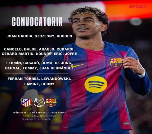 每體透露巴薩國(guó)王杯出征名單:亞馬爾領(lǐng)銜,拉菲、拉什福德缺席