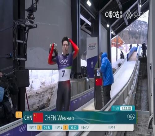 米蘭冬奧會(huì)男子鋼架雪車第2組:中國(guó)選手陳文浩1分52秒68,排第4