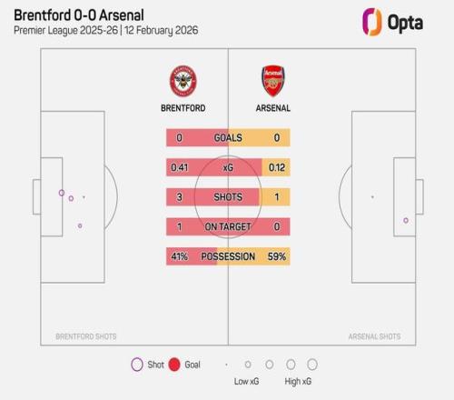 上半場比賽,布倫特福德和阿森納一共只完成4次射門,其中布倫特福德完成3次射門,1次射正,阿森納僅1次射門,沒有射正。
