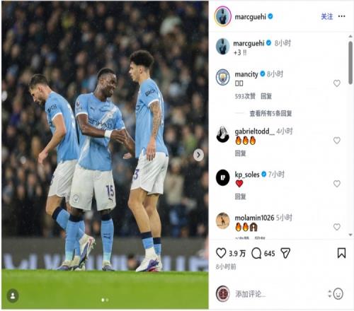 格伊社交媒體上曬出比賽照片,慶祝球隊取勝,配文:“+3??!”