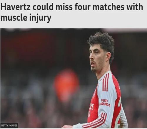 BBC記者AH消息,哈弗茨近日肌肉受傷,這名球星可能會缺席4場阿森納的比賽,分別是:布倫特福德、維岡競技、狼隊和熱刺。