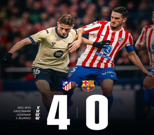 全場(chǎng)戰(zhàn)罷,馬競(jìng)主場(chǎng)4-0橫掃巴薩,收獲國(guó)王杯半決賽首回合的大勝,一只腳仿佛已踏入決賽的大門!