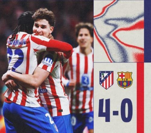 西班牙國王杯半決賽首回合,馬競主場4比0大勝巴薩!埃里克·加西亞烏龍+紅牌,格列茲曼破門,冬窗新援盧克曼和阿爾瓦雷斯均傳射建功;下半場巴薩進(jìn)球被VAR吹掉,最終馬競4比0狂勝。次回合將在北京時間3月4日凌晨移師諾坎普進(jìn)行。