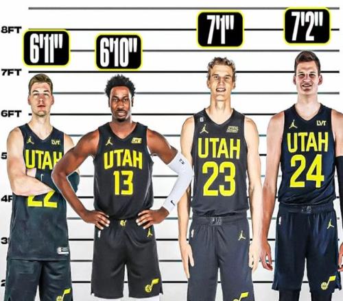 我們假設(shè)凱斯勒后續(xù)成功續(xù)約,那么下賽季爵士在前場擺出的高度就堪稱恐怖了: