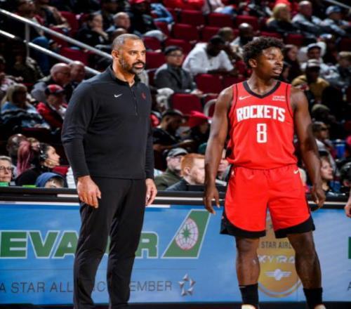 比如說烏度卡執(zhí)教的第一年,也就是23-24賽季,火箭隊(duì)全明星之后在杰倫·格林的帶領(lǐng)下拿到了聯(lián)盟第二好的戰(zhàn)績。那時(shí)候申京因?yàn)槭軅惣緢?bào)銷,小史密斯出任首發(fā)中鋒,阿門改打大前鋒,兩人的配合非常默契,火箭隊(duì)也拿到了全明星之后17勝11負(fù)的戰(zhàn)績。那時(shí)候火箭隊(duì)還取得了11連勝的驕人戰(zhàn)績,令人刮目相看。雖然沒進(jìn)季后賽,但火箭隊(duì)的穩(wěn)定表現(xiàn)還是令人認(rèn)可。