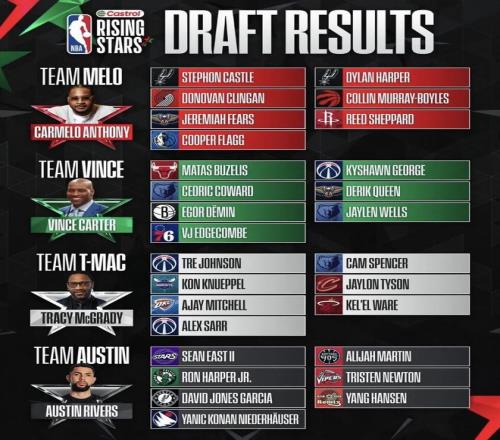 里弗斯隊的半決賽對手是卡梅隆·安東尼執(zhí)教的球隊,這支隊伍堪稱本屆賽事的最大奪冠熱門。陣中擁有2025年狀元秀庫珀·弗拉格,這位達(dá)拉斯獨行俠新星本賽季場均貢獻(xiàn)20.4分、6.6個籃板和4.1次助攻;多諾萬·克林根作為楊瀚森的隊友,本賽季已經(jīng)成為球隊的首發(fā)中鋒,這位二年級中鋒本賽季場均貢獻(xiàn)11.4分11.4籃板的兩雙數(shù)據(jù),排名聯(lián)盟籃板榜第三。此外,去年最佳新秀得主斯蒂芬·卡斯?fàn)栆苍谶@支隊伍中,本賽季他在馬刺場均貢獻(xiàn)16.5分、7次助攻和5個籃板,展現(xiàn)了全面的組織能力。
