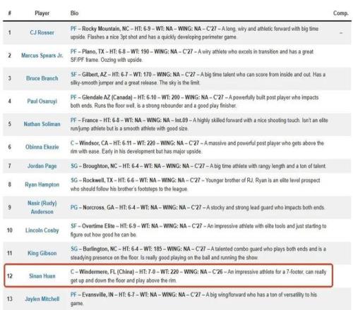 可以保持正常發(fā)展乃至更進一步的話,最重要的是防止重大傷病出現(xiàn),那么郇斯楠NBA前景非常明朗,之前美媒NBA Draft Room預(yù)測他會在28屆首輪第12順位被選中。
