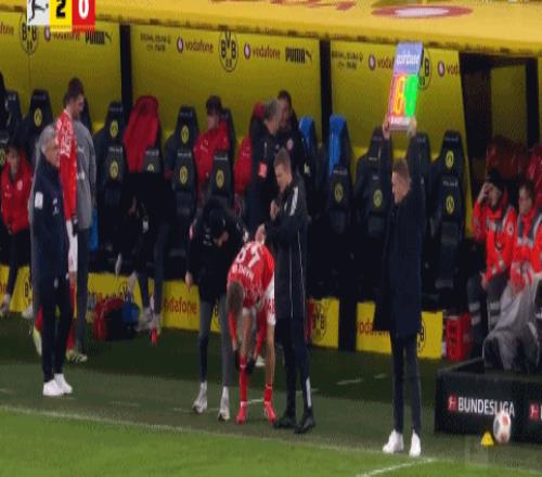 第27分鐘,美因茨換人,斯特凡-貝爾傷退,波圖爾斯基替補(bǔ)上場(chǎng)