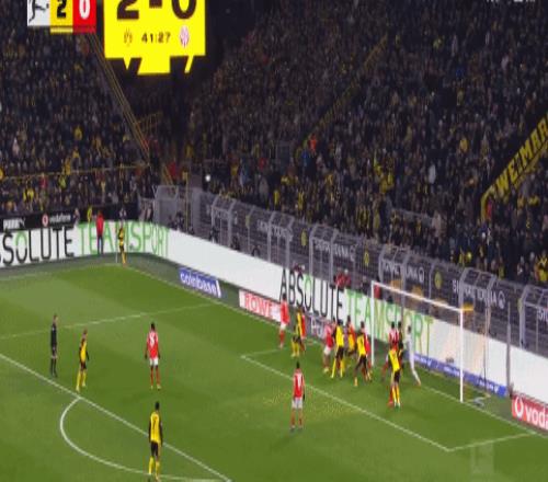 第42分鐘,瑞爾森角球找到吉拉西頭球梅開二度,多特3-0
