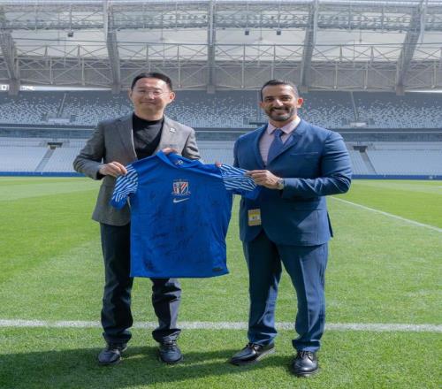 阿聯(lián)酋沙迦副酋長率團拜訪上海申花,申花方面贈送球衣+簽名足球
